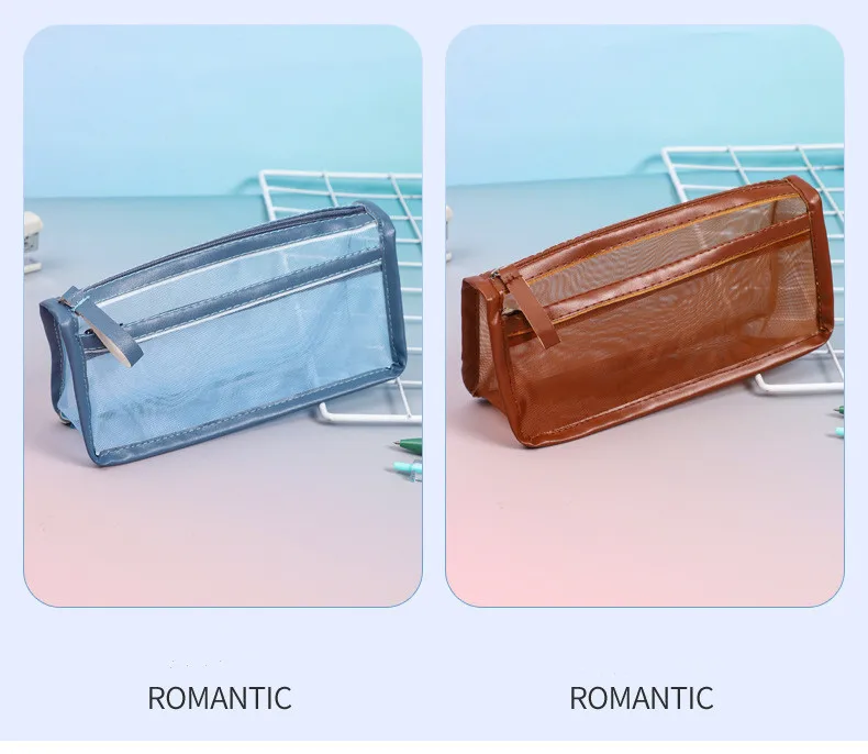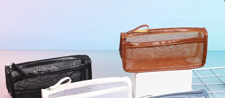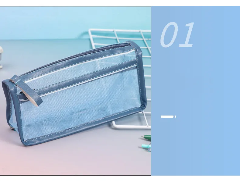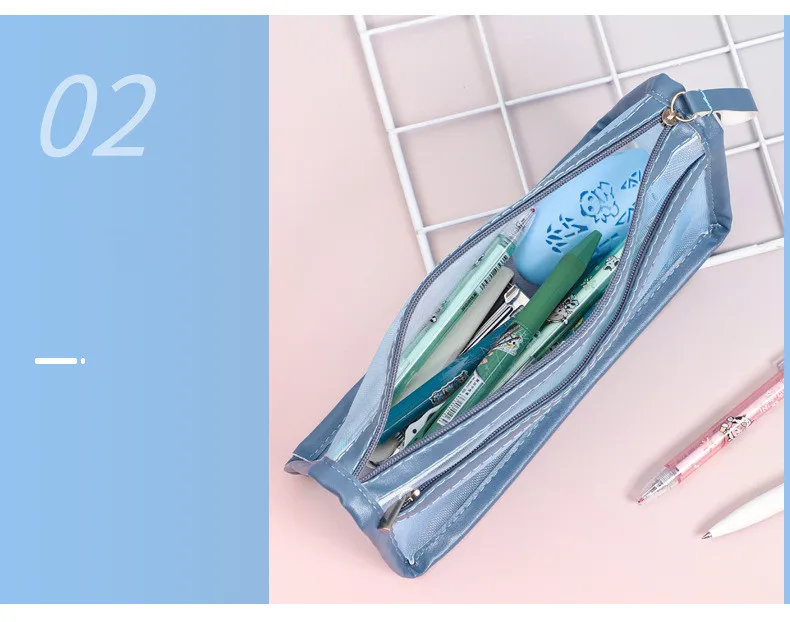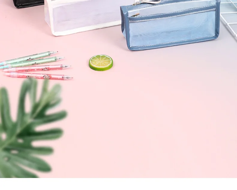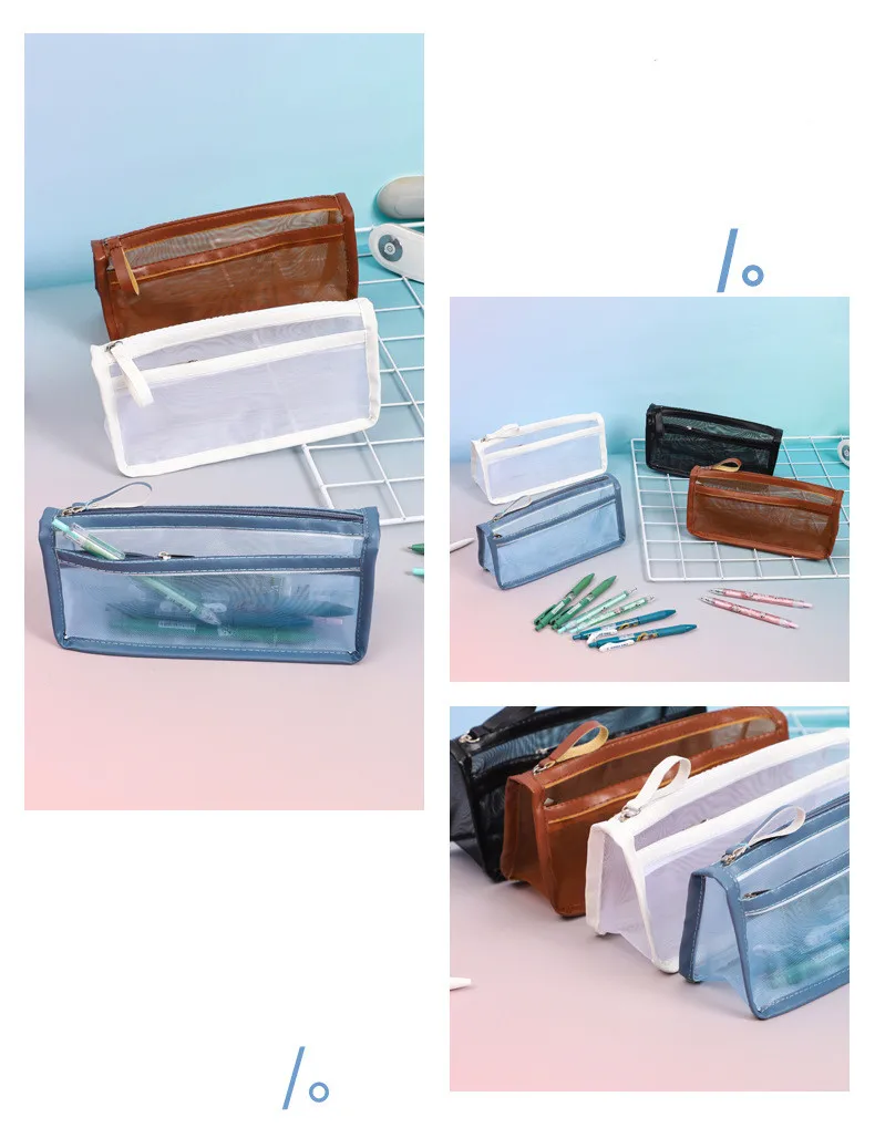 الثلاثي طبقة مزدوجة شفافة مقلمة شبكة قلم رصاص لطيف حقيبة الطالب اختبار القرطاسية حقيبة طفل اللوازم المدرسية حقيبة التخزين