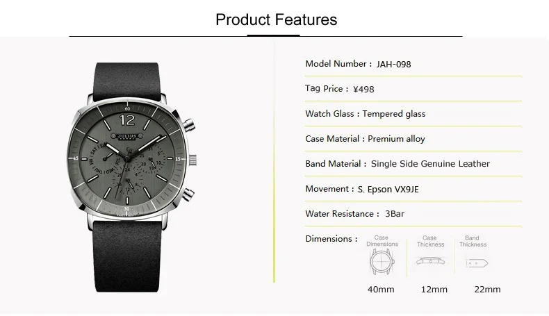 وظائف حقيقية يابانية Mov't ساعة رجالية ساعات الموضة سوار من الجلد الحقيقي هدية عيد ميلاد الصبي جوليوس صندوق